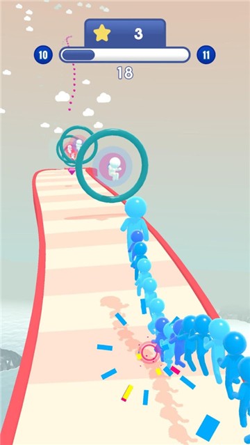 游戏采用卡通的画风设计,魔性的游戏玩法,简单的操作方式,丰富的关卡挑战,让大家在游戏里化身为可爱的果冻人形象,一边在关卡中收集果冻碎片,不断增加果冻人群,与其他关卡玩家比拼速度。