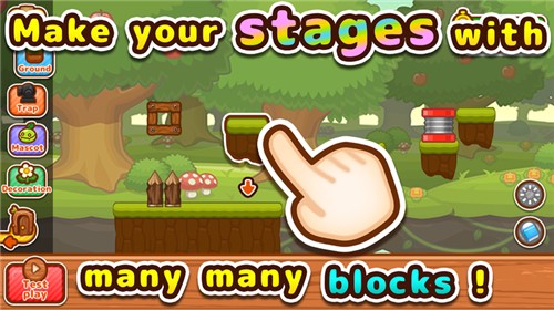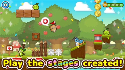 关卡制造者充满了创意的动作闯关手游,游戏中关卡可以由玩家亲自来制作,发布出去即可让世界各地的玩家挑战,新颖的玩法,充分发挥自己的技术来完成各种挑战,在这里有很多的关卡,全部可以由你去创造,你的世界你来做主,玩家可以自己创造关卡并且可以分享给全球其他玩家玩,游戏采用轻松的卡通风格,画面清新可爱,玩法也是很有趣,自由度很高,角色和敌人都很萌。