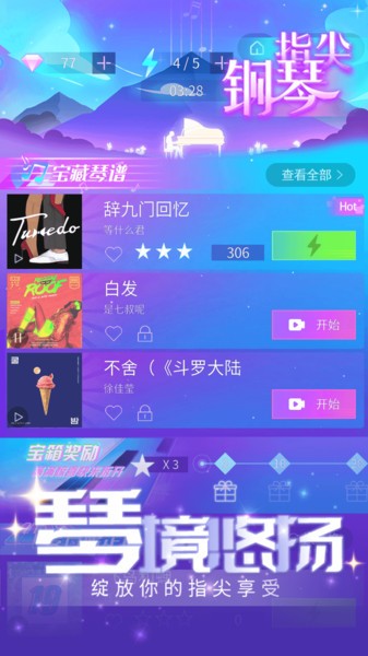 指尖钢琴模拟器亮点1、大量的歌曲将随着玩家的力量而继续解锁,每天都会出现新的模式。