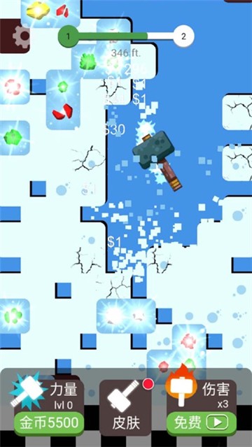1、各位玩家通过不断利用手中的锤子敲击石块,获取更多的宝石。