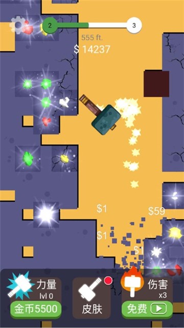 2、各位玩家可以通过观看,提升锤子的伤害指数,尽情享受游戏。