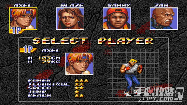 刚开场左下角的白色牌子里藏着一个加人1UP别忘了吃,这个场景虽然有沟,但还算好瘩,最尽头三个栅栏了一把匕首一个大加血,想快点结束战斗的话就把小兵全部往沟里扔吧,嘿嘿;第二个场景纯粹无聊,一边打推土机一边打墙,PASS过去;第三个场景,工地电梯,注意不要掉下去,打完第二批小兵后有小兵会从天而降,注意不要*边站,以免被从天而降的小兵踩到掉进沟里就得不偿失了,注意有个手持钢管的小兵,把钢管从他手里打下来就不要捡了,留着打这关BOSS非常有用,这关BOSS有点小棘手,是你的卵生兄弟,假AXEL,其实是个机器人,但有钢管的话就不怕了.所以那个钢管要留好,最后一批小兵打完了上楼顶,要见BOSS了,捡起钢管去收拾他吧,用钢管打他一般是不用费一滴血的,远距离跑冲(即前前B),他会迎面跳起来向钢管上撞的;如果没有钢管的话就要和他打游击战了,拖时间攒气用A,找机会近身用B,反正就是不能跳B,因为这个BOSS会冲刺技对空,相当无敌,面对他跳B就变成残废了。