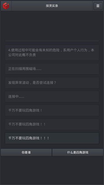 港诡实录是一款以现代都市香港为背景的生存解谜手游。你有没有玩过灵异游戏呢?笔仙真的能招来灵体吗?碟仙真的无所不知吗?四角游戏里多出来的那个“人”又是谁呢?大多数人都对未知的事情抱有好奇心,可是很多尝试过的人都讳莫如深,绝口不提。有的游戏不要轻易尝试。每一个选择,都有可能陷入未知的危险。选择有风险,决定请谨慎。好奇真的会害死猫……