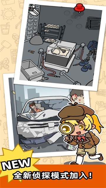 脑洞侦探是一款Q版卡通风格的冒险解谜闯关类手游,游戏采用了Q萌可爱的卡通风格,带给玩家丰富的游戏乐趣以及视觉体验,而且玩家需要通过线索来寻找谜底突破关卡,同时游戏以竖屏的方式游玩,操作简单易上手,非常适合玩家在空闲时刻进行游玩体验。