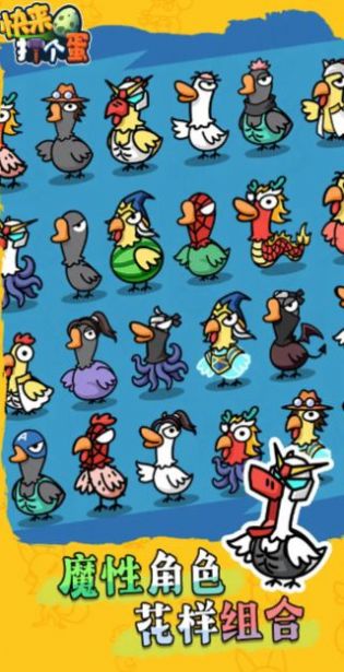 快来打个蛋游戏是一款非常有趣的角色扮演游戏,快来打个蛋游戏有着精美的画面和丰富的游戏内容,但是你必须小心,场景细腻逼真,玩家可以自由地探索世界,在这款游戏中你将能够收集各种各样的小公鸡战士开启战斗,如果玩家对快来打个蛋游戏感兴趣的话,那就快来下载体验游玩吧!