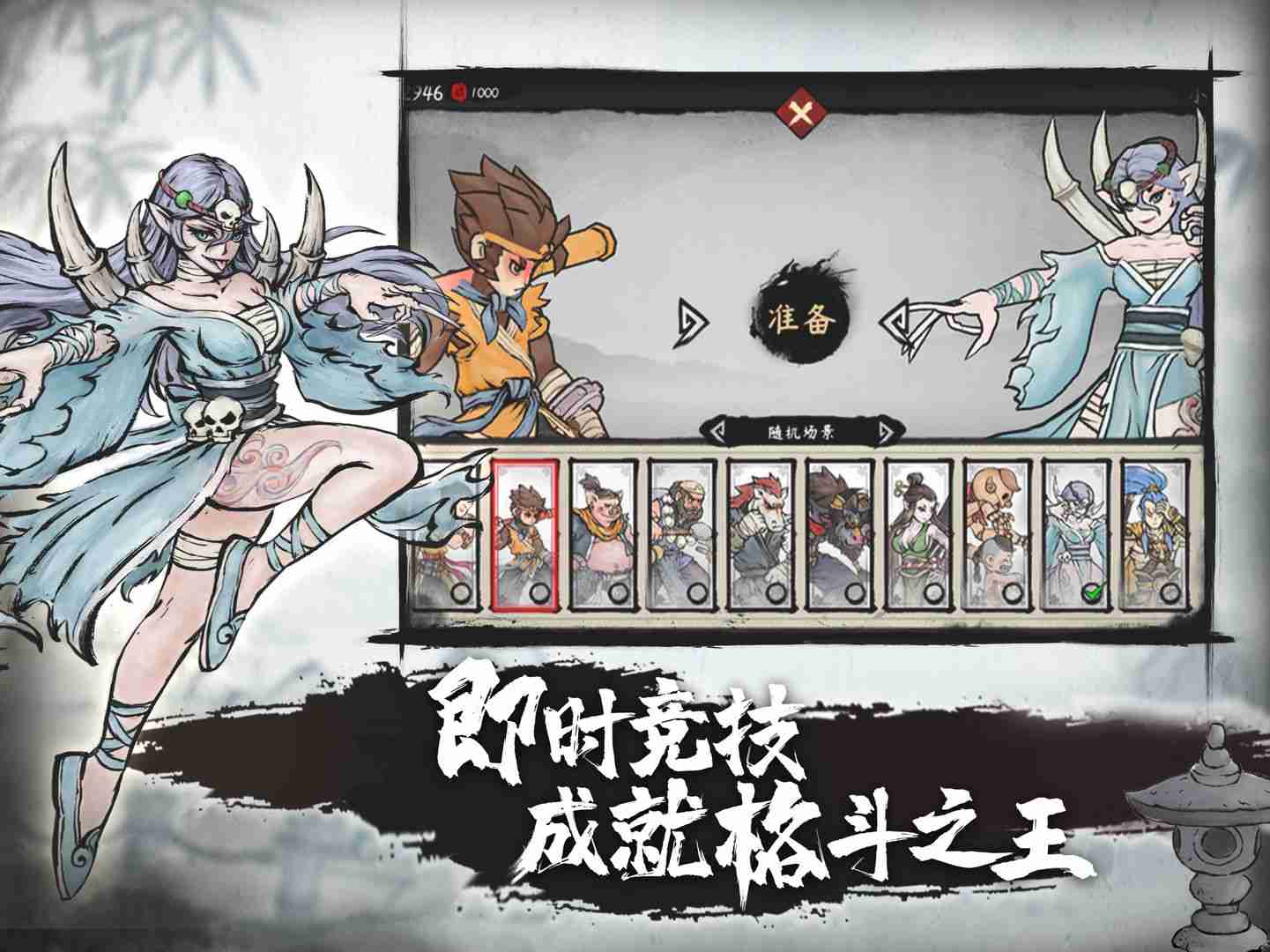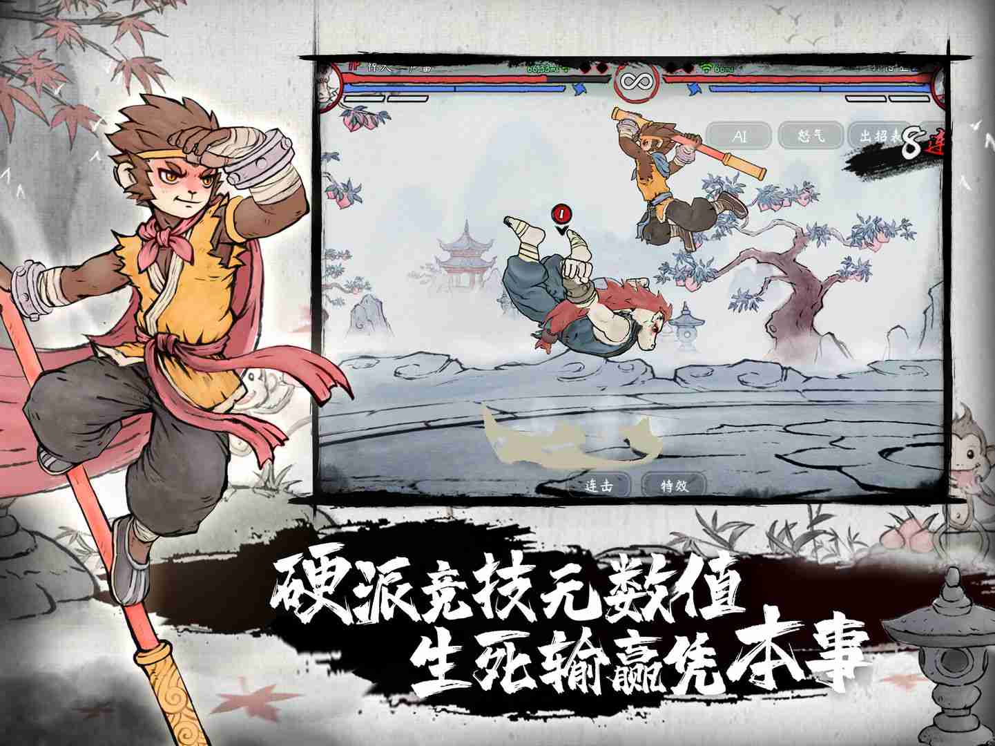 墨斗手游是一款水墨西游画风的动作格斗类游戏,玩家们可以自定义的修改游戏的难易度,从而更加容易的上手游戏,同时游戏的各种按键在需要的时候会自动出现,方便玩家可以愉快的体验游戏,享受西游人物格斗带来的乐趣!