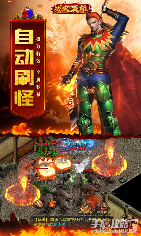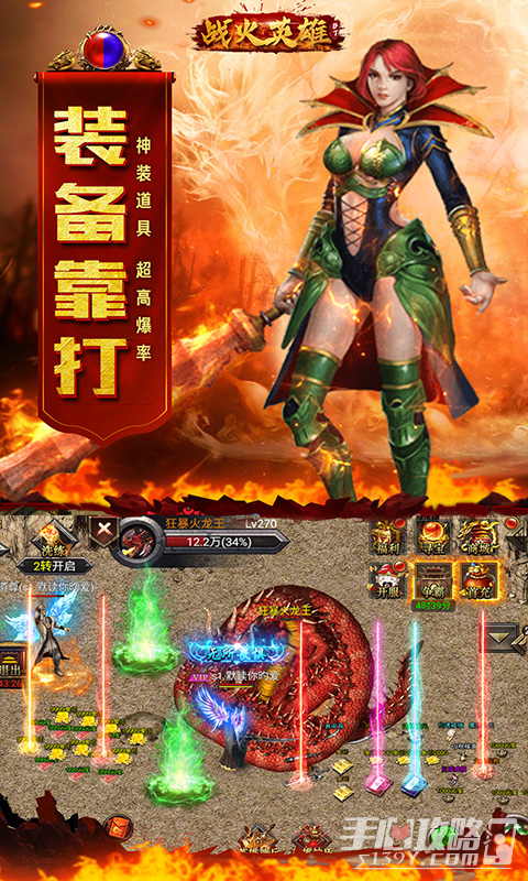 1、战火英雄传奇主打爽快的战斗系统和华丽的技能特效,通过加入魔幻风格世界,参与众多经典副本关卡,支持自由挂机系统,轻松打怪练级,海量福利礼包和高强化神级装备等你领取,与兄弟一起征战沙场,主宰天下
