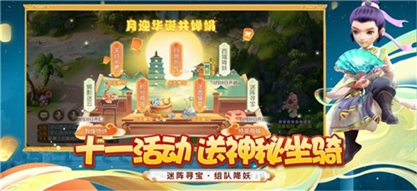 在少侠们的齐心协力下,长安城异象解除,并迎来了热闹的“周年庆典”。白天,玩家将与好友一起,见证长安这个世界名都的繁盛,而在夜幕降临华灯初上之际,又将品味它静谧而不失大气的一面。