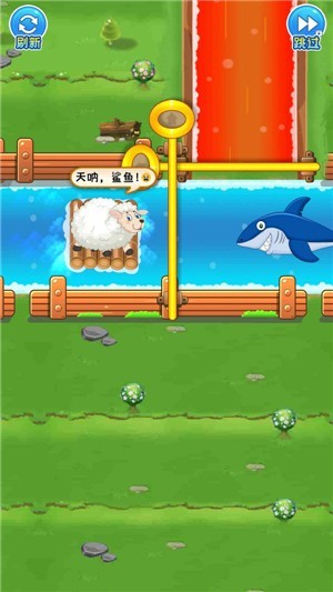 3、每一个关卡都非常有难度,玩家需要观察针的走向,让水浇灭岩浆大火,成功拯救被困的小绵羊