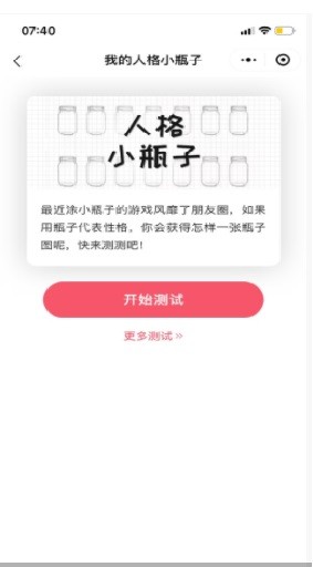 我的人格小瓶子手游是一款休闲的测试游戏,游戏上会出现很多问题,玩家只需根据自己的内心选择答案即可,一套提问结束以后游戏就会得出玩家的性格特点,类似于经典的心理测试游戏。