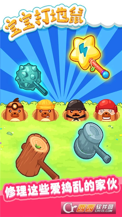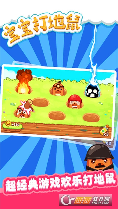3、宝宝打地鼠(益智闯关)卡通风格的益智休闲单机手游,一个老少皆宜的手机休闲小游戏。游戏可以训练玩家的反应速度、大脑协调能力。游戏玩法就是,将从地洞冒出来的地鼠,点击敲打将它打下去,打中的越多越快,得分更高哦,是一个很休闲好玩的益智手游。有兴趣的玩家可以来下载体验