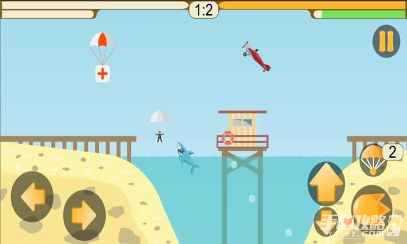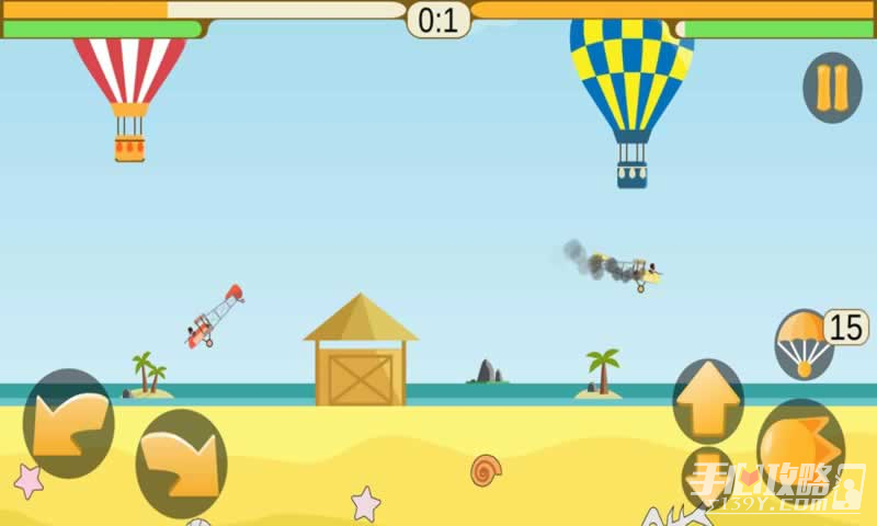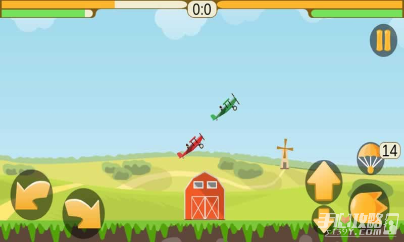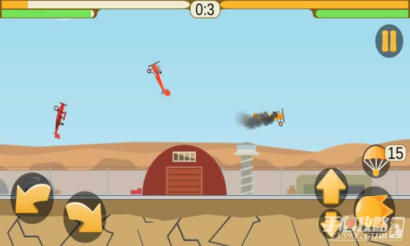2、游戏采用卡通画风,清新简约,深受玩家喜爱。玩家将会驾驶自己的飞机来攻击其他玩家,当然你也会受到攻击。当你的飞机将要坠毁的时候,跳伞无疑是一个很好的选择