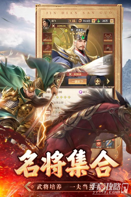 2、玩家可以进行各种三国名将的收集养成,战乱之中出英雄,带领你的军队进行攻城略地,精致的游戏画风带你感受最刺激的三国战役,加官封爵