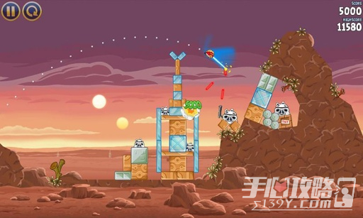 3、你需要寻找合适自己的小鸟进行不断的破坏建筑物,然后运用每一个不同小鸟的特性