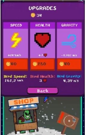 4、在每个星球上,你都可以通过金币用来升级鸟的健康、速度或降低他的重力等