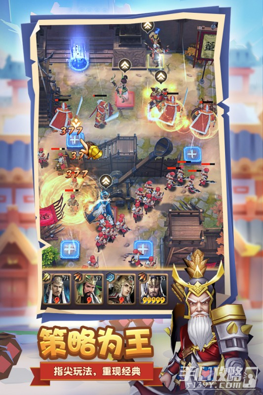 2、该游戏为玩家带来全新的塔防割草玩法,在这里玩家将进入到三国的世界中,然后可以招募到三国时期各种英雄,并调遣在自己的武将进行战斗,以及游戏还有着丰富的玩法供玩家进行挑战,与其他的玩家进行竞技,游玩起来非常的有意思