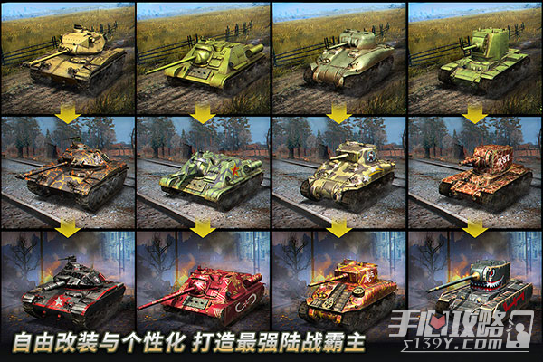 6、战场争锋,真实战斗体验!重制复刻经典战役场景,细腻刻画战斗临场氛围,从太平洋战场、非洲沙漠战区、法国小镇到俄罗斯兵工厂,玩家驾驶战车在这些充满战争回忆的土地上自由驰骋,重现历史辉煌时刻!仿佛亲身驾驶真实坦克,置身于硝烟四起的真实刺激战场,体验全方位沉浸式战斗体验