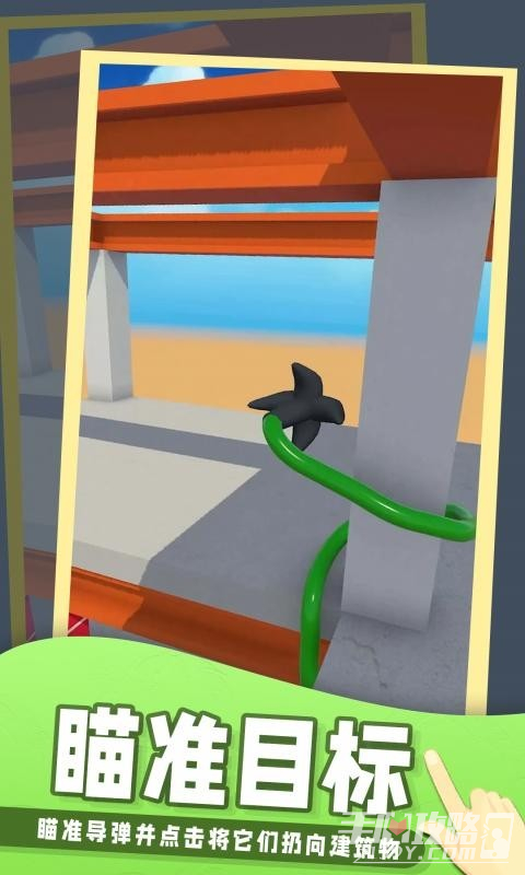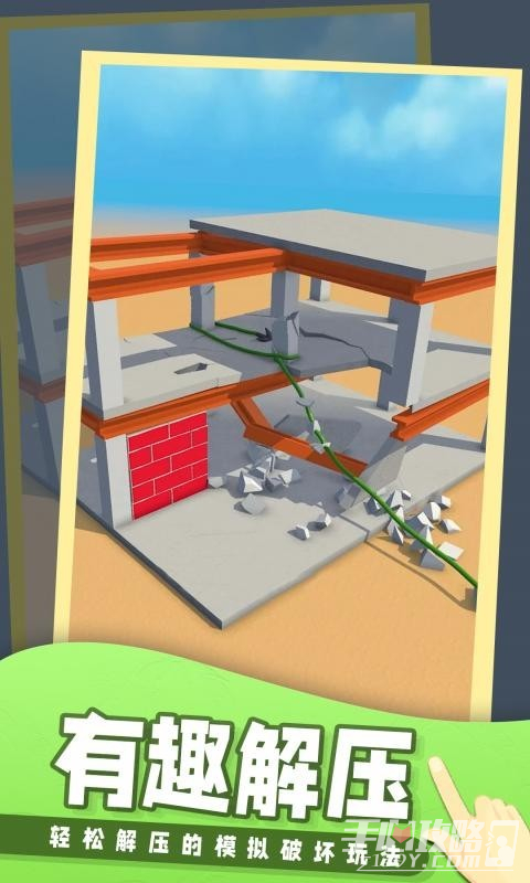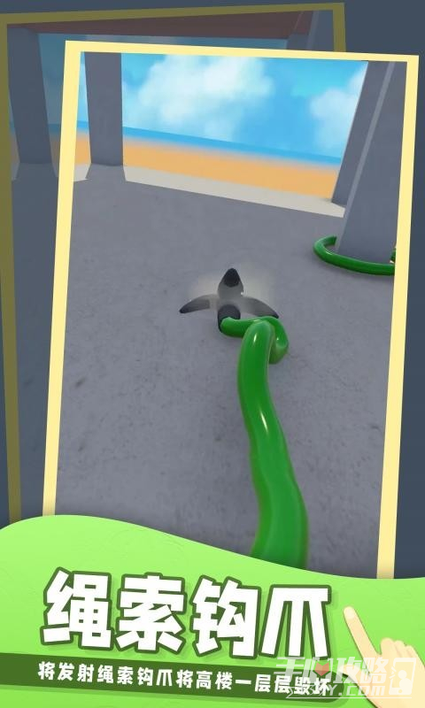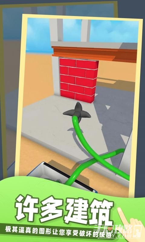 1、玩法简单易懂,只需要手指点击屏幕发射钩爪,然后触碰到想要的建筑就能直接破坏掉。