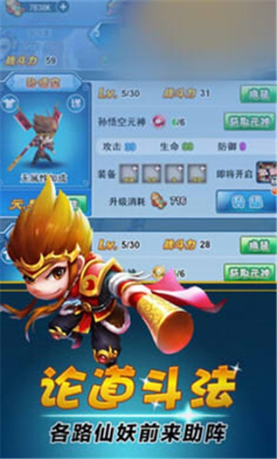 2.再现西游记剧情,收集最好的神器,随心所欲搭配护身法器,强化人物力量。