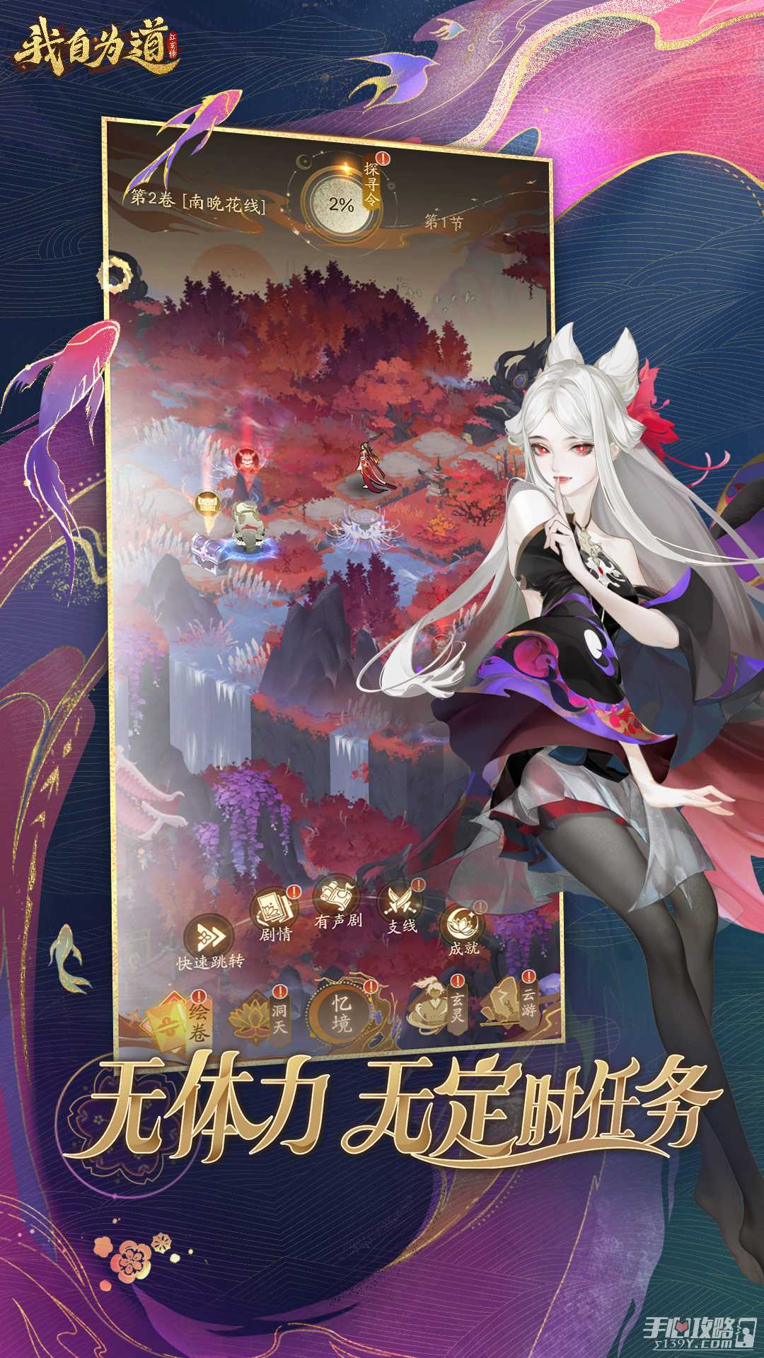 我自为道是一个带有仙侠氛围的放置rpg手游,基于数百万字原创小说的宏大世界观,通过群像叙事的剧情结构,绮丽的东方幻想画风,cv全程演绎全剧情配音,重策略轻数值的阵容构建,呈现无与伦比的视听盛宴;让战斗告别纯数值比拼的陈旧模式,让玩家体验专属于每个角色的感动;回归策略战斗的初心。