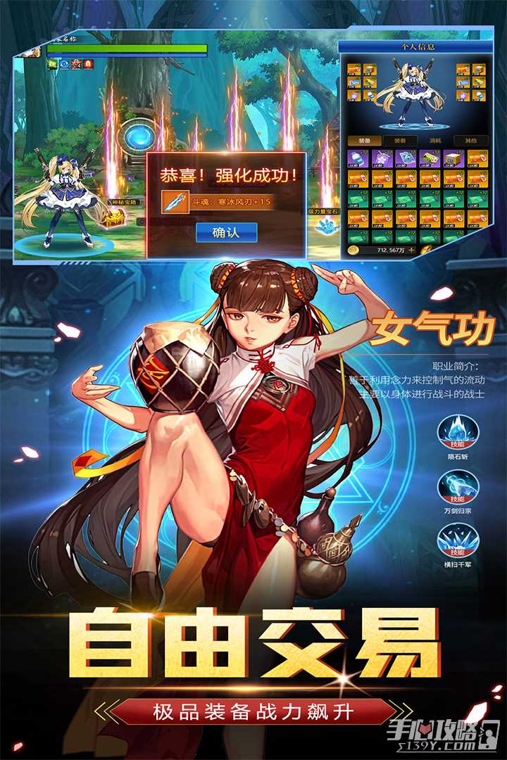 1、精细的装备系统,通过战斗获得装备,提升自己的属性和战斗力,打造属于自己的强力角色