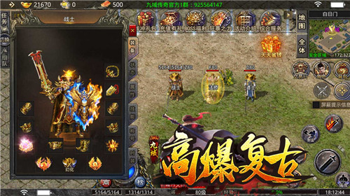 九域高爆复古传奇是一个传奇的角色扮演类型手机游戏,里面会有各种各样丰富的挑战内容,而且它的设置可以根据你自身的需求完成更改,有很多的战斗在等待着你的挑战,你可以不断的升级自己的人物,获得更多稀有的装备,快速的提升游戏里面角色的实力,你也可以积极的加入在一些工会里面,去组建一个非常强大的团队,这样在你挑战副本的时候会变得更加的轻松一些。